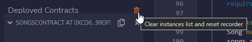 - Down in the "Deployed Contracts" area, click the trash can to delete the existing contract