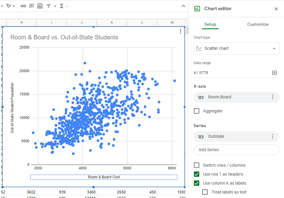 - X-axis (horizontal axis) label: "Room & Board Cost"