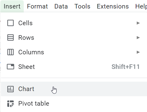 After that, you can edit the spreadsheet and create charts! Select the "Chart" option from the "Insert" menu to add one: